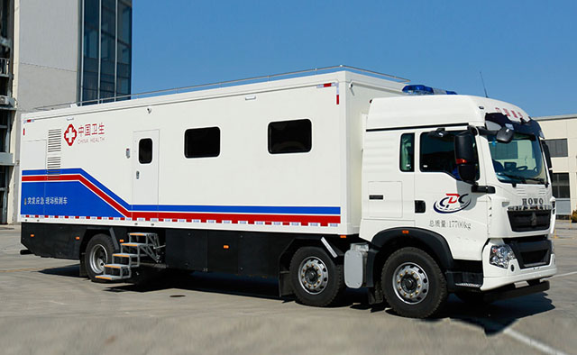 移動P2P3實驗室車移動靈活,個性化定制,經濟實用。用途廣泛,出入境檢測,軍隊戰時實用,偏遠地區病毒檢測,衛生部門特別是疾病預防控制機構可以及時運用到受災地區。隨時可能受到突發性病毒侵害使用它同樣有極好的安全保障功能。移動P2P3實驗室車一般由集裝箱改裝而成。長12米左右。車廂內有設置實驗室,緩沖室,檢測室,技術室。配套齊全。