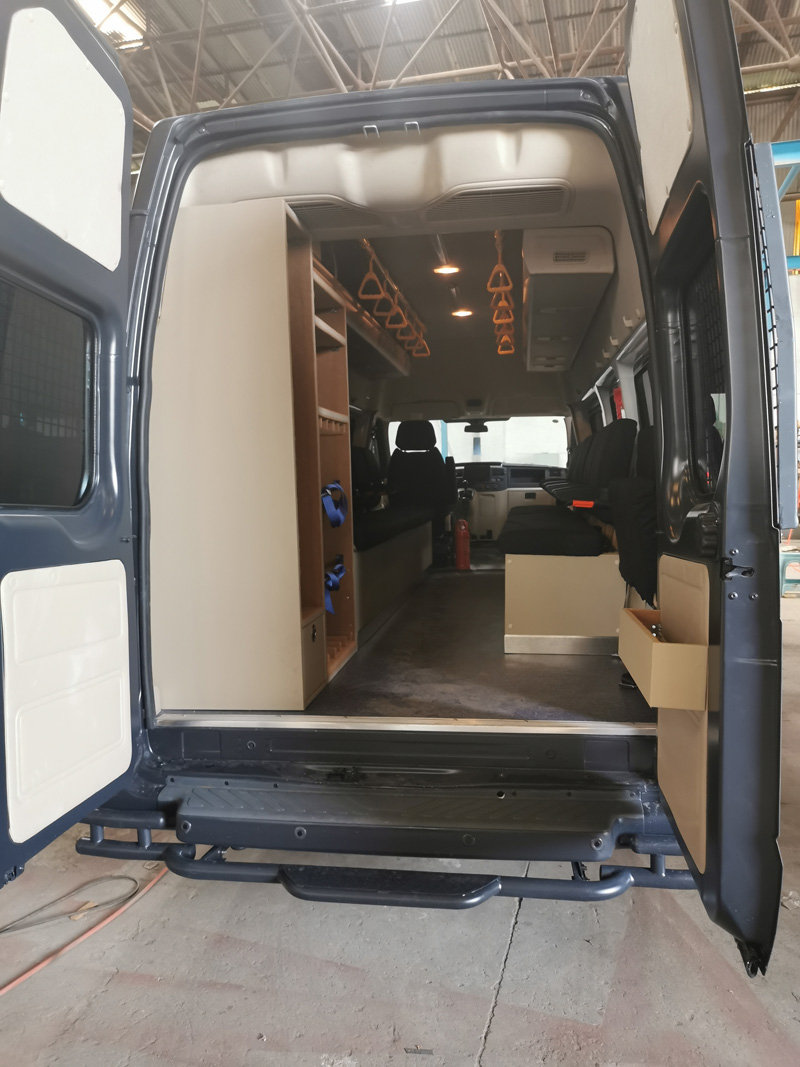 運兵車能夠快速穩定地將多名突擊作戰人員,同時輸送到不同的作戰突破口,是武警、特警、消防等部門不可或缺的處置作戰裝備。非常適用于日常巡邏、追擊阻截及突發事件等各類現場布控需求,運兵車同時能滿足多人處突小組日常巡邏的需要。高強度防護,強抗沖擊力。運兵車配備高強度防護網。運兵車有前后保險桿抵沖擊。防暴膜車窗玻璃,輪胎配備爆胎防側翻裝置。運兵車前部存放盾牌等較常用裝備,具體根據裝備類型和數量定制。
