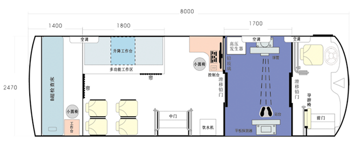 DR體檢車立鉛防護室,把DR鉛防護室安裝體檢車中心,圖像數字化處理成像準確。比醫院的科室DR便捷,而且有相當不錯的抗震效果,在生產DR車的時候,考慮到車載DR較科室DR功率略小,在體檢車上定制車載DR能高效完成放射類體檢項目。其放射X劑量少很多,也讓移動體檢車在行駛過程中更安全。采用三層以上噴涂噴砂技術、防銹防腐、光亮鈀漆技術。